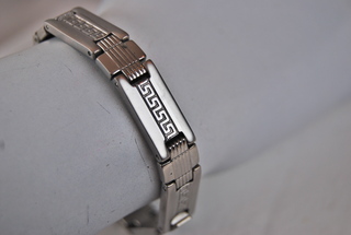 Designer Polished Silver Stainless Link Design, 8 1/4".