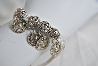 Ladies Stainless Wire Design Bracelet with Silver Sun Charms, Adjustable Sizing.