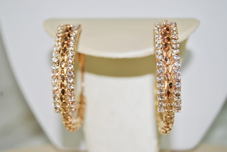 Ladies Designer Swarovski 14K Gold Plated Triple Hoop Design Pierced Earrings.