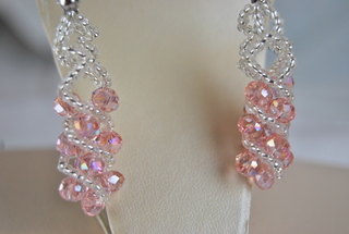 Ladies Designer Pink & Clear Swarovski Crystal Dangle Braided Design Pierced Earring.