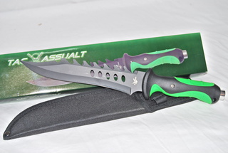 Tac Assault Knife with Green and Black Rubber Grip Handle 18".