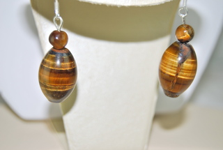 Ladies Designer Polished "Tiger Eye" Gemstone Barrel Design Pierced Earrings.