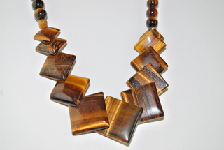 Ladies Designer 18" Polished "Tiger Eye" Gemstone "Square" Design Necklace.