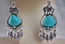 Ladies Designer Turquoise & Silver Dangle Pierced Earrings.