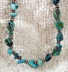 Ladies Designer Rhomblic Turquoise & Silver Pendant Necklace with 20" Silver Chain.