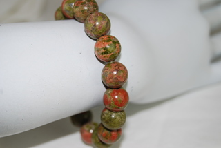 Ladies Designer Natural "Unakite" Gemstone Bracelet with Round Beaded Design.