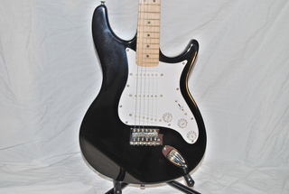 New Washburn Black Strat Electric Guitar, White Pickguard, Triple Humbucker Pick-Ups, 6-String, Right Hand, Chrome Bridge, 22 Fret Rosewood Fingerboard and Whammy Bar.